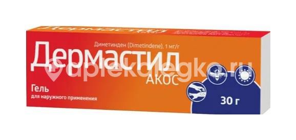 Розничная цена от 430. Препарат Дермастил АКОС применяется у взрослых и детей в возрасте от 1 месяца: • при кожном зуде различного происхождения (кроме связанного с холестазом), например, зудящие дерматозы, экзема, крапивница, укусы насекомых; • при солнечных ожогах, бытовых и производственных ожогах (легкой степени).