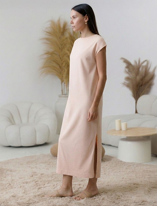 Состав: 100%Хлопок Плотность: 140 Г/м2Стильное базовое платье пудрового цвета длины макси выполнено из 100% хлопка плотностью 140 Г/м2. Главная особенность этого изделия — тонкое кулирное полотно, которое легче и воздушнее стандартного трикотажа. Благодаря своей деликатной текстуре модель идеально подходит для домашних образов и пижамных комплектов. Ткань отлично «дышит», обеспечивая максимальный уют во время сна и отдыха. Свободный и прямой крой не сковывает движений и легко скроет возможные недостатки фигуры., а разрезы добавляют легкости и непринужденности образу. Короткий цельнокроеный рукав и позволяет чувствовать себя удобно в теплую погоду, а так же в домашней обстановке. Простота кроя сочетается с современным дизайном, создавая гармоничный лук без излишеств. Это легкое платье подойдет для тех, кто ценит комфорт и элегантность одновременно.
