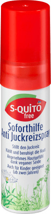 Спрей против зуда S-quitofree с активным ингредиентом римской ромашки является надежным средством немедленной помощи для предотвращения расчесов и, таким образом, способствует регенерации места прокола после укуса насекомого. Он также успокаивает и питает кожу благодаря подорожнику и тимьяну.