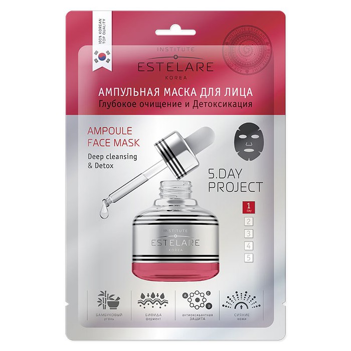 Ампульная маска для лица Shary Глубокое очищение и Детоксикация с бамбуковым углем, гиалуроновой кислотой и комплексом из 9 натуральных экстрактов обеспечивает интенсивное очищение кожи лица, оказывая действие как на поверхности кожи, так и в глубоких ее слоях.