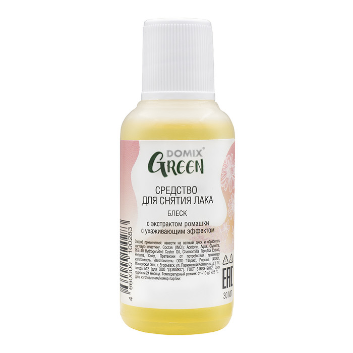 Совместные покупки Челябинск Косметика и парфюмерия Прочее — Domix Green Блеск 30мл пл Средство д/сн.лака с экстр.ромашки с ухажив.эффектом
