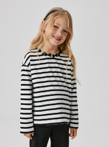 Джемпер из эластичного трикотажа в полоску. Свободный силуэт, круглый вырез горловины, длинный рукав. Удлиненная спинка.На ребенке представлен размер 140:- Ширина изделия по линии груди 36,5 см- Ширина по низу изделия 40 см- Длина рукава 50 см- Длина изделия 55 смРазница между размерами составляет 1,5 см.