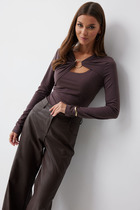Джемпер прямого свободного кроя выполнен из хлопокового полотна двухнитки шоколадного цвета. Характеристики: прямой крой, широкий отложной воротник, центральная застежка-молния, рукав втачной спущенный, манжет на резинке с фиксаторами, по низу изделие собирается на резинку с фиксаторами. Длина рукава от края горловины 79 см, длина по спинке от шва горловины 71 см.