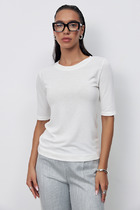Джемпер из технологичного трикотажного полотна с эффектом peach. Прямого силуэта с втачным рукавом и спущенной линией плеча, с манжетой из отделочной ткани по низу рукава. По переду печать с вышивкой "Queen". По горловине и низу изделия притачная планка из отделочной ткани.