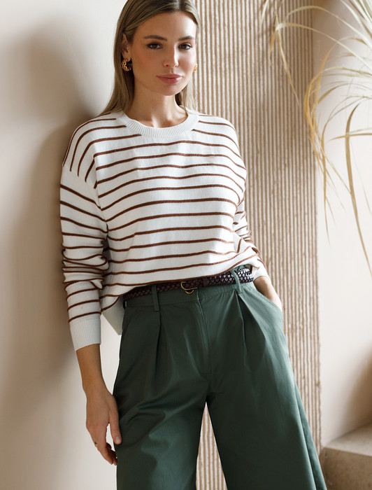 Состав: 95%Хлопок 5%Мет (люрекс)Джемпер выполнен из хлопковой пряжи. Модель украшена контрастными полосами с добавлением мягкого люрекса с деликатным сиянием. Благодаря натуральному составу в изделии будет комфортно в любое время года. Свободный силуэт подходит для любой фигуры.