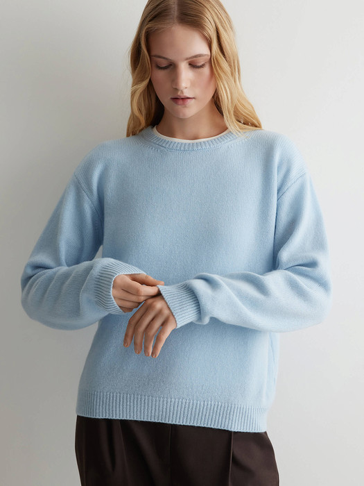 Джемпер из кашемира прямого кроя, тонкая вязка, круглый вырез горловины и спущенное плечо.