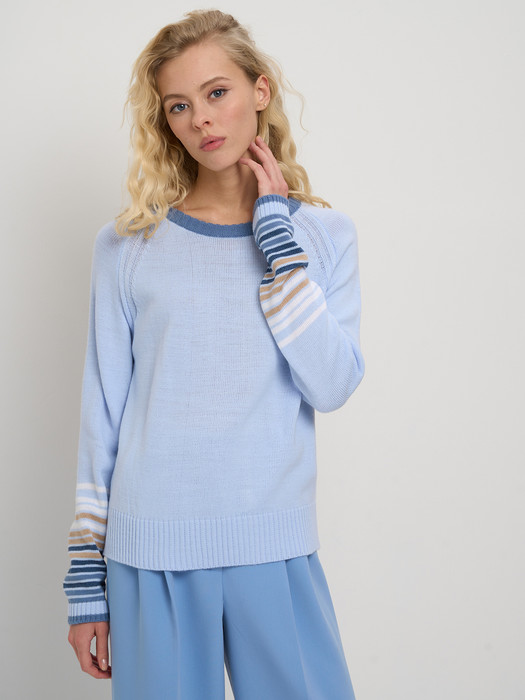 Джемпер NewVay 7242-40269 голубой/зимнее утро/т.джинс/латте/белый