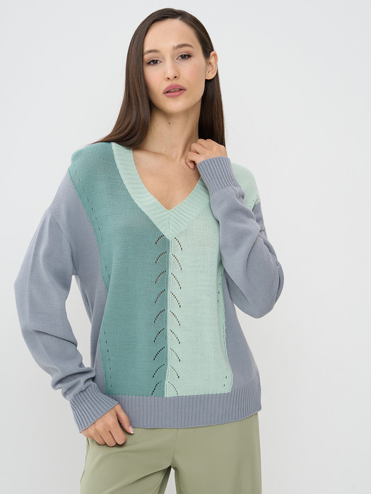 Джемпер NewVay 9242-94054 арктика/малахит/грозовое небо