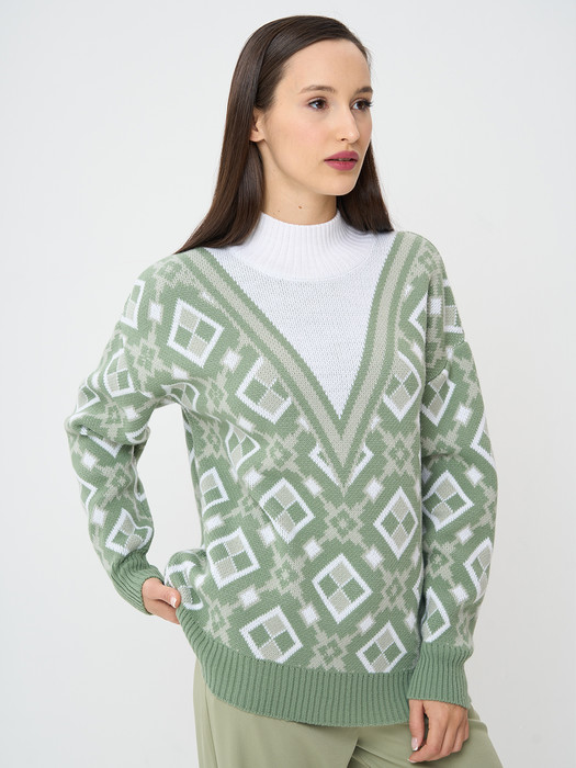 Джемпер NewVay 9242-94085 шалфей/белый/св.полынь
