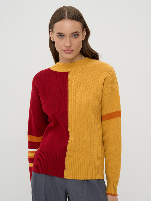 Джемпер NewVay 9242-94111 шафран/красный/абрикосовый пунш/белый