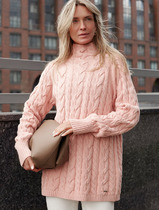 Vilatte Удлиненный свитер фактурной вязки с узором косы D34.188 пудровый