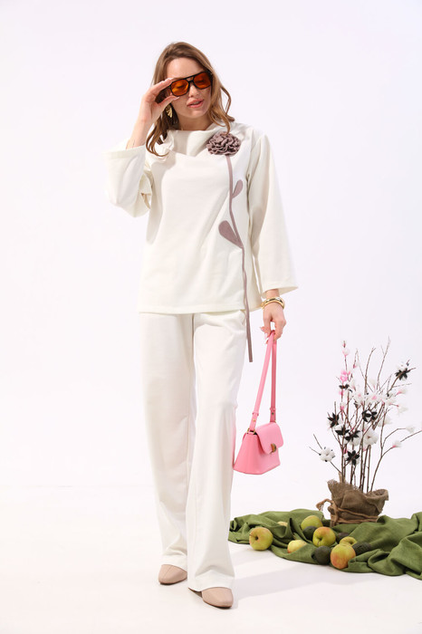 Джемпер-кейп прямого свободного силуэта. Горловина с цельнокроеным воротником-стойкой. Рукав втачной широкий, от линии локтя до запястья есть дополнительное отверстие для рук. Декорирован элементом из контрастной ткани.