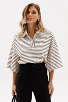 Джемпер прямого покроя из костюмной ткани. Модель сочетает в себе женственность и удобство.. Горловина переда декорирована планками с дизайнерскими пуговицами. В боковых швах сделаны планки с дизайнерскими пуговицами.