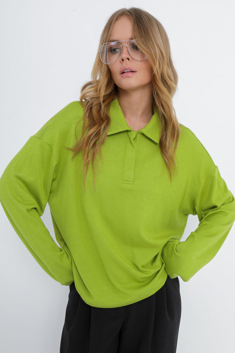 Свободный джемпер с воротником-поло.