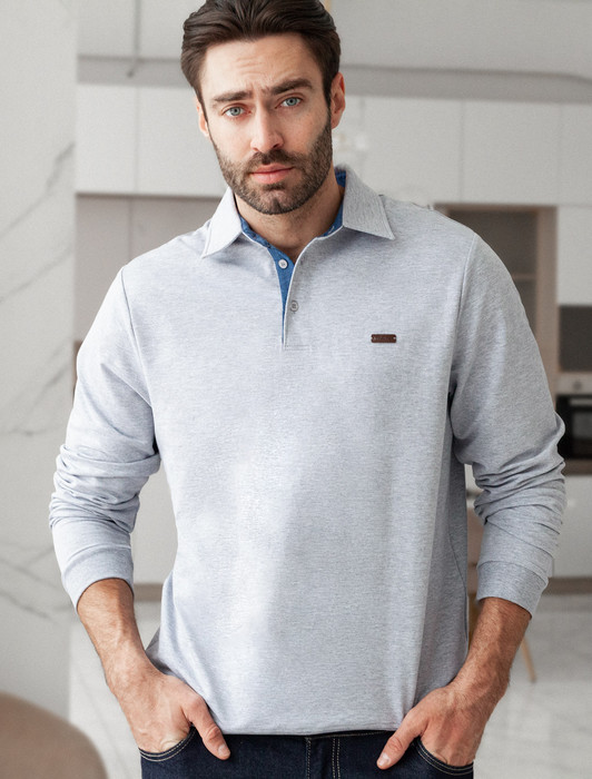 Совместные покупки Челябинск Мужская одежда Футболки — Джемпер-поло из эластичного футера с застежкой на пуговицы