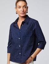 Трикотажное поло с отложным воротником с цельнокроеной стойкой. Вырез горловины обработан притачными планками с застежкой на петли и пуговицы. Втачные длинные рукава.