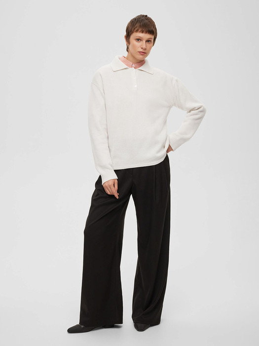Джемпер регби из кашемира и шерсти с отложным воротником, застежкой на пуговицы по переду и спущенной линией плеча.