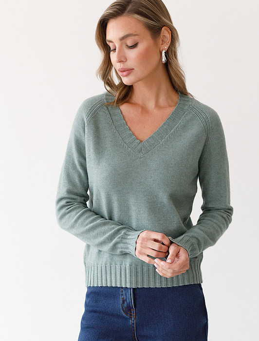 Состав: 52%ПАН (акрил) 33%ПЭ 8%ПУ 7%Кашемир Размер товара на первом фото: 42Невероятно женственный джемпер светло-оливкового цвета с V вырезом связан из высококачественной пряжи с кашемиром — идеальное сочетание мягкости и практичности. Пряжа с кашемиром придаёт ему бархатистую нежность и тонкую структуру, каждое прикосновение с которой, напоминает о тепле и уюте в прохладные дни. Благодаря нежной текстуре материала этот вариант отлично подходит даже для чувствительной кожи, не вызывая раздражения и дискомфорта в течение дня. Сдержанный, элегантный силуэт джемпера подчёркивает вкуc обладательницы, а филигранная отделка ворота — внимание к деталям. Универсальный оттенок и изящная мягкость делают его идеальным выбором в любой ситуации. Широкие манжеты и нижний край добавляют аккуратности, а продуманная посадка делает повседневный джемпер удобным для многослойных образов — от офисного комплекта, например, в сочетании с блузкой, до расслабленного уикенда. Свободный крой джемпера идеально подходит для женщин, которые ценят удобство и стиль одновременно, а так же идеально подходит на большие размеры. Благодаря качественной пряже свитер сохраняет форму и внешний вид даже после многократных носок. Практичный фасон идеально подходит для работы в офисе или встреч с друзьями. Благодаря классическому крою джемпер гармонично сочетается практически с любыми элементами гардероба, помогая всегда выглядеть актуально. Сочетается в костюме с брюками D38.013, D38.012 и юбкой D36.016