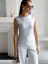 Топ с закрытым декольте из хлопка с эластаном в рубчик с матовым покрытием метал