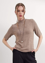 Джемпер удлиненный, свободной формы из трикотажного полотна. Воротник-стойка. Спущенная линия плеча. Рукав узкий.