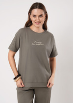 21.04 Vilatte Свободный свитшот с принтом и разрезами из эластичного футера двух