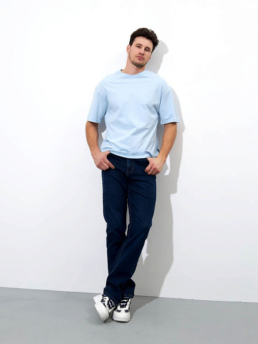 Мужские модные джинсы с пятью карманами. Посадка Regular fit (полуоблегающие по бедру), высокая талия. Застежка на молнии. Выполнены из слабоэластичной ткани denim comfort stretch. Средняя стирка с потёртостями и "усами" спереди и потёртостями сзади.