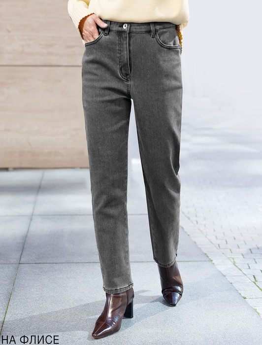 Джинсы мом-фит из эластичного плотного денима на флисе