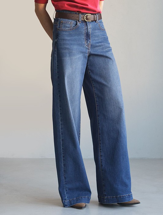 Джинсы трубы с декоративной стиркой из эластичного денима средней плотности