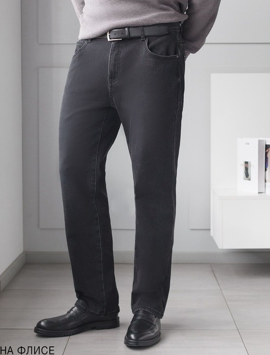 Состав: 65%Хлопок 32%ПЭ 3%ПУ Плотность: 17 OZТеплые джинсы черного цвета прямого кроя созданы для мужчин, ценящих комфорт и стиль даже в холодную осень или зиму. Повседневные джинсы выполнены из эластичного денима, легко тянутся и не сковывают движений, обеспечивая правильный баланс между свободой и удобной посадкой стандартного фасона. Внутри мягкий флис дарит приятные ощущения, надежно согревают в холодную погоду и делают каждую прогулку максимально комфортной. Свободный классический крой подходит на разные типы фигур, в том числе и большие размеры. Правильная посадка гарантирует удобство и комфортные ощущения при носке. Джинсы дополнены пятью карманами и брендированным патчем на поясе. Джинсы удобные на все случаи жизни: они сохраняют форму, не деформируются при носке и обеспечивают оптимальную теплоизоляцию. Утепленный материал создает дополнительный уровень защиты от холода, что делает изделие надежным выбором на зиму и осень. Комфортные брюки отлично сочетаются с разными образами благодаря универсальному дизайну. Они подходят тем, кто ценит практичность и стиль без компромиссов по качеству.