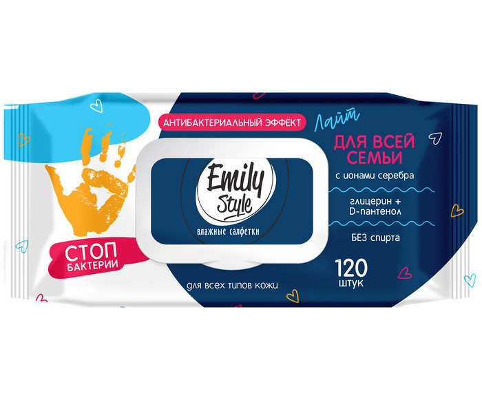 Emily Style ЛАЙТ Влажные салфетки ДЛЯ ВСЕЙ СЕМЬИ АНТИБАКТЕРИАЛЬНЫ с крышкой 120ш