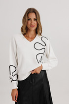 ESENIA Джемпер женский с высоким воротом и разрезами по бокам - Белый
