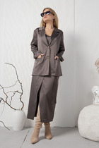 Модель прямая, длинная, внизу сзади небольшой разрез (картинку можно посмотреть на сайте производителя)
