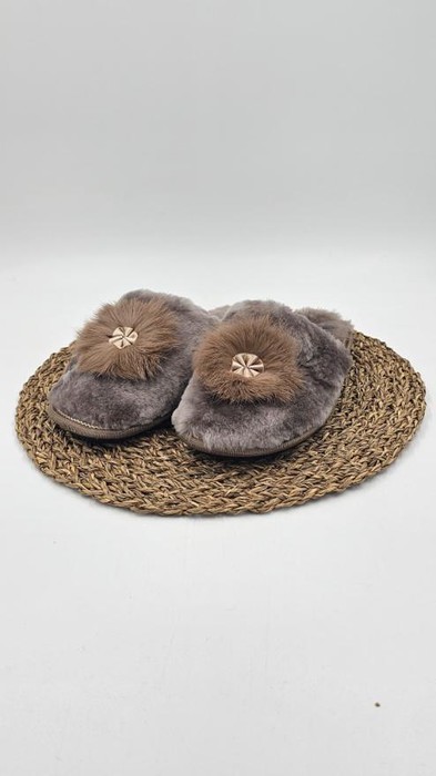 Совместные покупки Челябинск Женская обувь Домашняя обувь — ESENIA Женские тапочки из мутона с помпоном