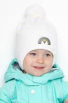 Очаровательная шапка для самых позитивных малышей!шапка будет удобной и теплой благодаря завязкам, мягкой трикотажной подкладке и дополнительной защите для ушек.разноцветная пряжа и пушистый помпон из ниток отлично дополнят зимний образ и подойдут к любому гардеробу ребенка.