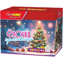 Эффекты:1. Разноцветные кометы разрываются сферами. 2. Серебряные форсы и красные мерцающие огни. 3. Золотые форсы, красные и золотые мерцающие огни. 4. Красные и трещащие огни. 5. Синие огни и серебряные форсы.