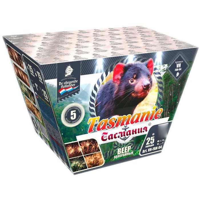 Вырывающиеся на свободу небесного пространства дикие залпы незабываемого фейерверка "Тасмания" обязательно пробудят Ваш интерес к этому острову. Если столь богатые, насыщенные эффекты, множество полыхающих огней, огромное изобилие трещащих искристых звездочек получили такое название, что тогда в действительности представляет собой австралийское побережье, названное в честь своего первооткрывателя - легендарного голладского мореплавателя? Какая интрига заключена в этом уникальном салюте? Насколько богат салют "Тасмания", настолько разнообразны и развлечения на острове. Шикарные песчаные пляжи, шум морских волн, на которых так мечтает прокатиться любой серфингист, многообразие цветов и растений, пестрящих изобилием на острове. Вот лучшее описание эффектов! Весь салют - это огромные волны, которые разбиваются о небесный океан множеством искристых, золотых от солнечного света, брызг, цветущие повсюду красочные огни и звезды, тонкие пиротехнические яркие пальмы.