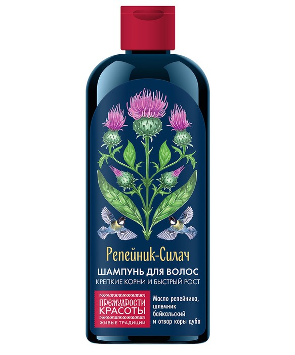 Репейник – народный знахарь, который за колючками хранит большую силу и пользу, а корень – укрепляющее масло. Шампунь для волос Репейник-силач сварен по старинному рецепту для сильных и здоровых волос.