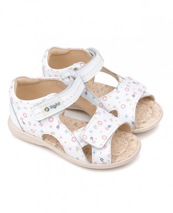 Новая линейка Tapiboo Light - это мягкая и лёгкая повседневная детская обувь с плоской стелькой (без подсводника) и гибкой подошвой. Сандалии с открытым носом для девочек. Выполнены из натуральной гладкой кожи белого цвета. Подкладка и стелька – нежнейшая яловая кожа (кожа телёнка), подарит особый комфорт маленькой ножке. Широкий надёжный ремешок с липучкой в носочной части, дополнительный ремешок на лодыжке. Отличная раскрываемость для удобства надевания и прекрасный воздухообмен. Формоустойчивый задник и упругий мягкий кант. Сандалии украшены ненавязчивым принтом с бабочками и фирменным логотипом.