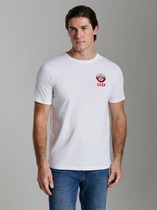 Футболка мужская из гладкокрашеного трикотажного полотна "кулирка" с лайкрой, классическогоь покроя, с коротким втачными рукавами, горловиной овальной формы, обработанной втачной планкой и принтом на полочке, выполненным в технике шелкографии.