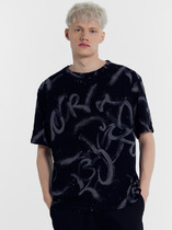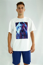 Футболка мужская оверсайз из трикотажного полотна: хлопкового с добавлением лайкры. Модель с принтом на переде, спущенной линией плеч, рукавами длиной до локтя.