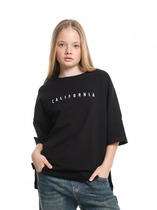 Трикотажная футболка, декорированная ярким принтом с деталями из блесток. Прямой крой, круглый вырез горловины, короткие рукава с отворотами.На ребенке представлен размер 110:- Ширина изделия по линии груди 30 см- Ширина по низу изделия 31 см- Длина изделия 39 смРазница между размерами составляет 1,5 см.