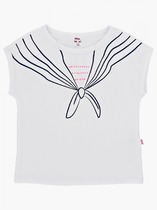 Трикотажная футболка с эффектом тай-дай, декорированная яркой нашивкой на груди. Прямой крой, круглый вырез горловины, короткие рукава с отворотами.На ребенке представлен размер 110:- Ширина изделия по линии груди 32,5 см- Ширина по низу изделия 34 см- Длина изделия 39 смРазница между размерами составляет 1,5 см.