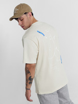 Футболка с круглым вырезом горловины свободного силуэта и со спущенной линией плеча. Модель декорирована тематическим принтом. Футболка удачно сочетается с любыми поясными изделиями данной коллекции, а так же с брюками и шортами Almando Melado.