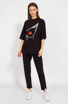 27.03 Vilatte Нарядная футболка с принтом фольгой из премиального хлопка с элас