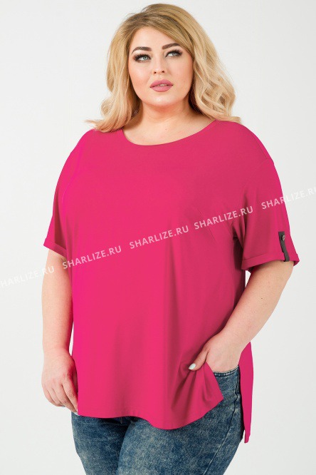 Яркая футболка из мягкой вискозы, освежит Ваш образ в жаркую погоду. Модель удлиненная, по боковым швам есть аккуратные разрезы. Рукав у футболки полуприлегающего силуэта, со слегка спущенной проймой. Низ рукава декорирован кожаными патами и пуговками.