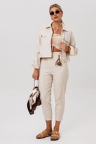 Джемпер трикотажный полуприлегающего силуэта, с втачным коротким рукавом. По горловине притачная планка из основной ткани.