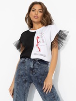 Vilatte Нарядная футболка с принтом фольгой из премиального хлопка с эластаном D
