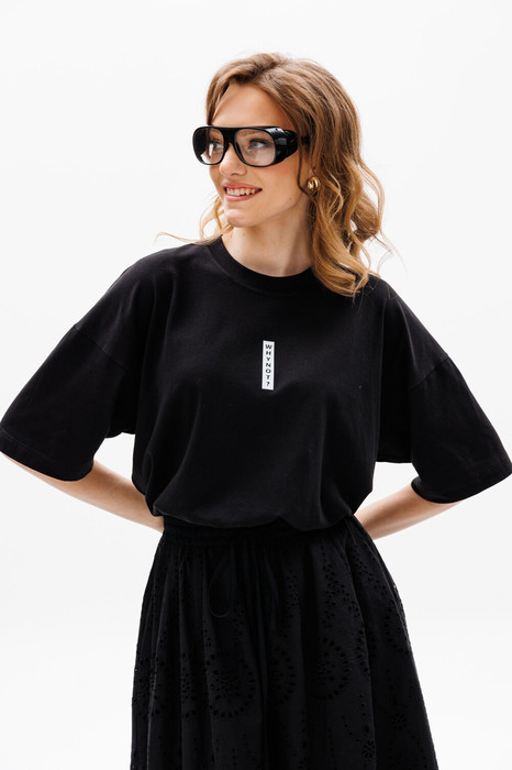 Джемпер выполнен из трикотажного полотна, прямого покроя, длиной до линии бедер. Перед и спинка цельные. Горловина округлой формы. Плечевой шов спущен. Рукав одношовный, длиной до линии локтя. Перед декорирован принтом.