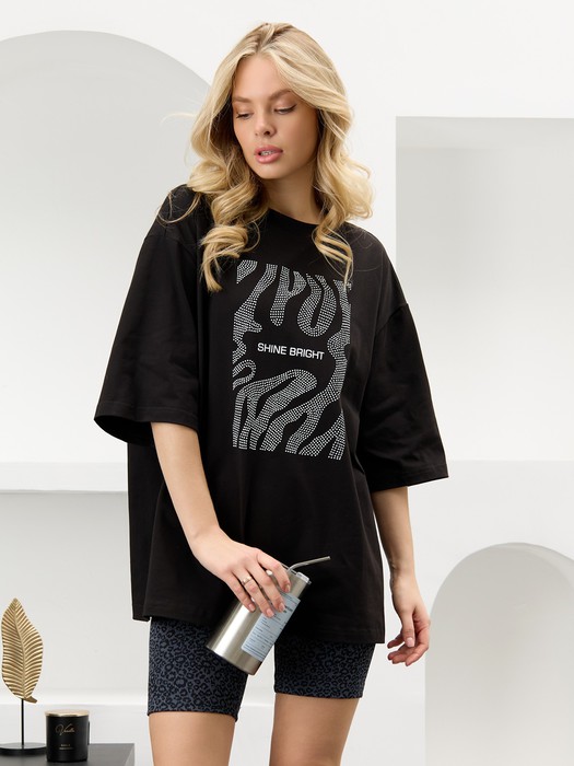 Футболка молодежная из гладкокрашенного трикотажного полотна «кулирка» с лайкрой, свободная покроя «оверсайз», с горловиной овальной формы, обработанной притачной планкой, рукавами длиной до локтя. На полочке выполнена печать в технике «шелкографии».