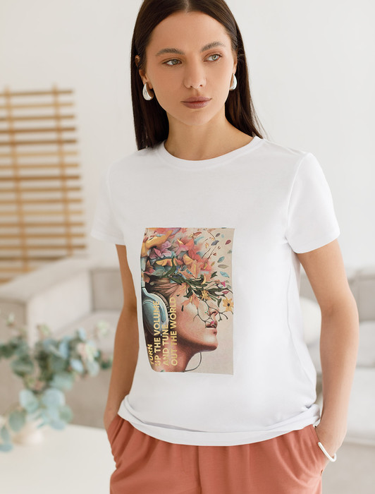 Состав: 100%ХлопокПеревод принта: Turn up the volume and tune out the world - сделай музыку громче и отключись от мира. Футболка прямого кроя выполнена из 100% хлопка. Базовая модель дополнена лаконичным авторским принтом. Легко впишется в повседневный гардероб. Изделие хорошо держит форму и обеспечивает комфортный микроклимат в течение дня.